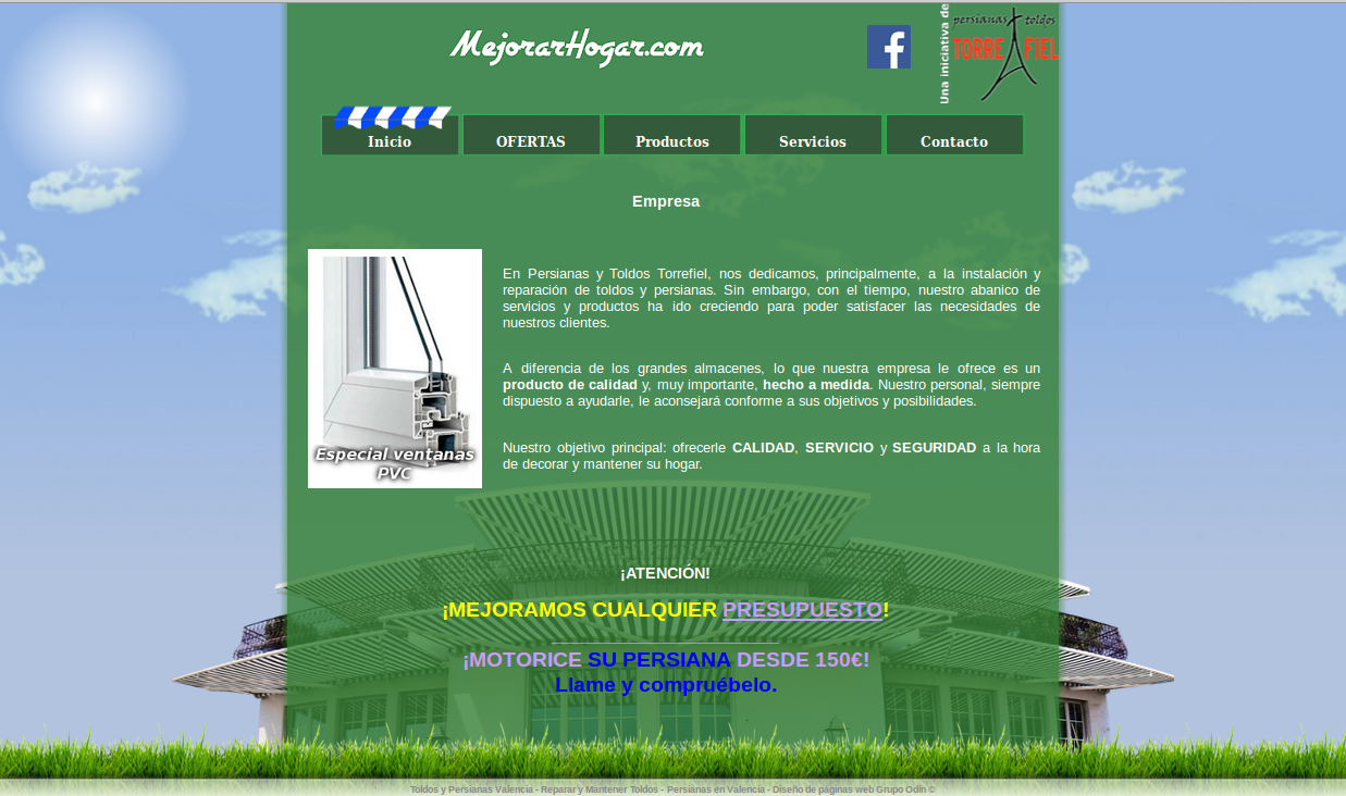 www.MejorarHogar.com es lo minímo que debe de tener una empresa, en este caso es una web "portada" explicando un poco lo que hace la empresa y el tipo de servicios que ofrece. Toda empresa debe de tener un portal en Internet sea mejor o peor, y este, es un buen ejemplo.