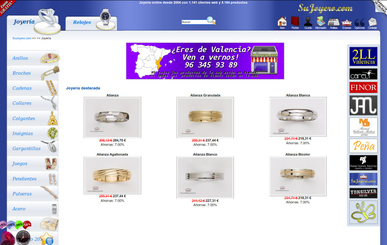 www.SuJoyero.com es un e-commerce en el que podrás encontrar anillos, relojes, colgantes y toda clase de joyas y complementos. En este caso se ha diseñado un sistema de stock en tienda y stock en almacén puesto que una joyería ha de tener siempre, parte de su stock visible al público.